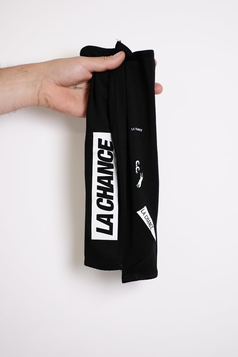 This is krafted by La Chance, at the showroom, product might be different on logo positioning.